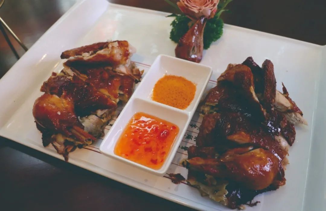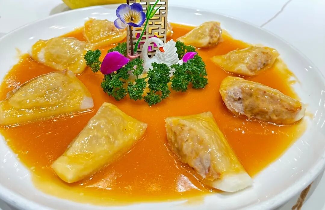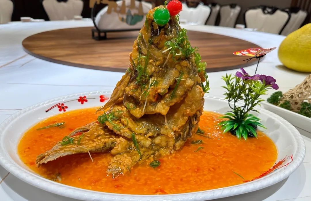 特色菜:椒盐三宝、脆皮烧鸡、香酥甜酒鱼、容州酿柚子皮。