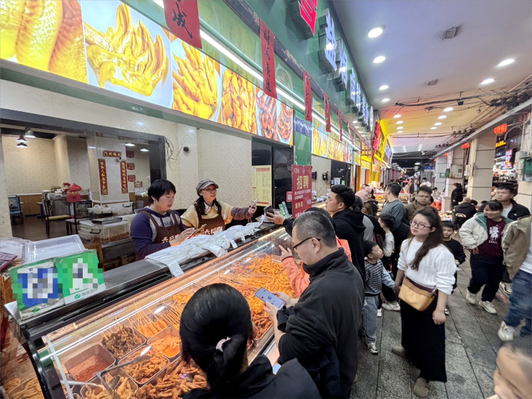 十字街上人气爆棚的美食档。