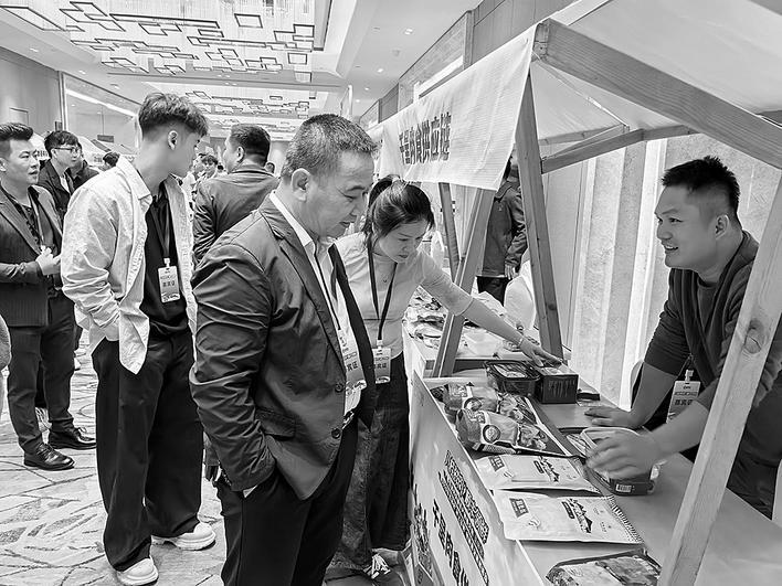 生鲜产品展示区集中呈现了玉林本地特色肉类产品,与会嘉宾与企业代表现场洽谈,初步达成多项合作意向。