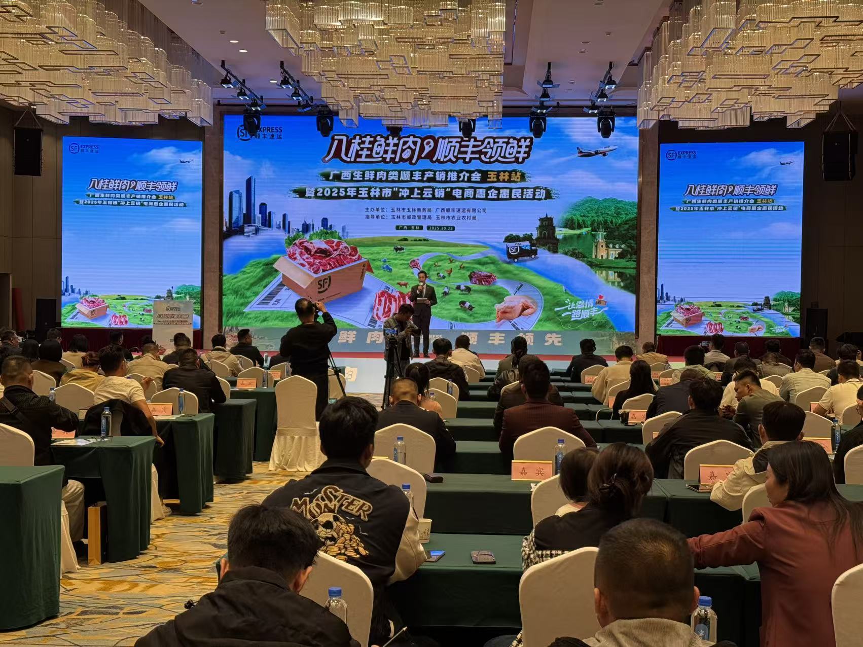 10月23日,“八桂鲜肉·顺丰领鲜——广西生鲜肉类顺丰产销推介会玉林站暨2025年玉林市‘冲上云销’电商惠企惠民活动”在玉城举办。本次活动由玉林市商务局、广西顺丰速运有限公司主办,旨在搭建生鲜肉类产销对接平台,推动本地生鲜产业与电商、冷链物流深度融合。